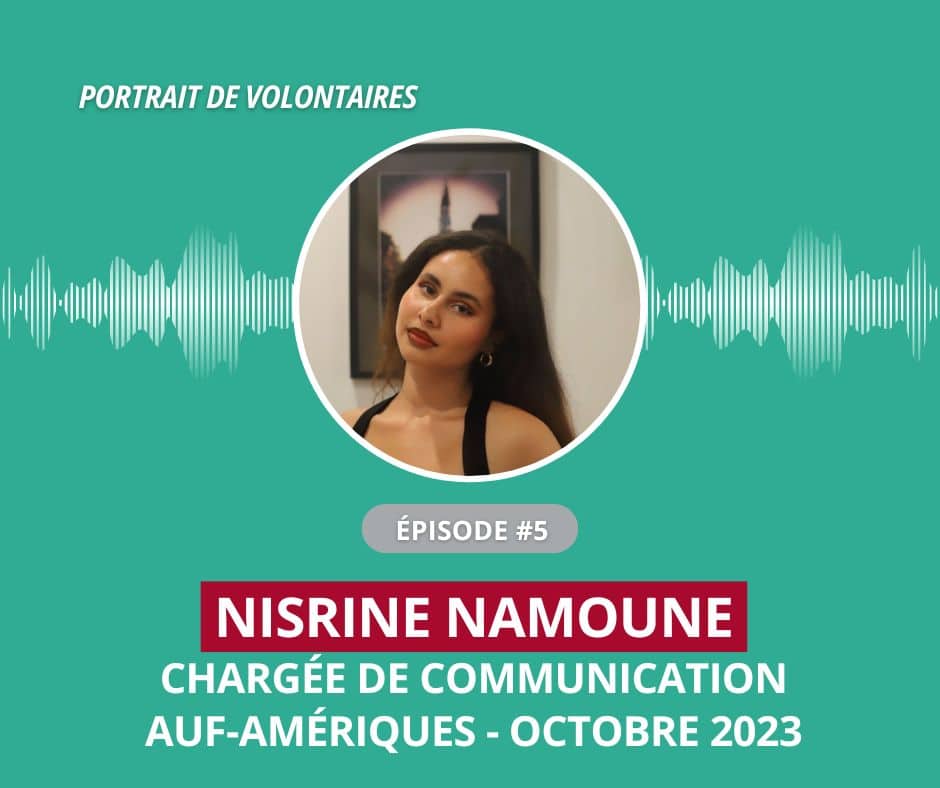 C’est au tour de Nisrine Namoune, volontaire chargée de communication à l’AUF-Amériques de nous livrer son parcours. En poste depuis octobre 2023, Nisrine s’est venue s’installer à Montréal pour une mission de 11 mois.