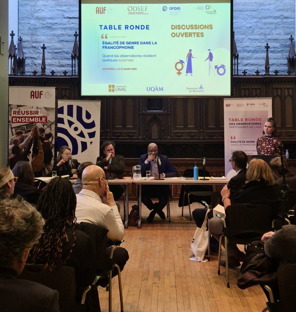 Plus de 250 participantes et participants, en présentiel ou en ligne, ont pris part à la table ronde 2026 des observatoires partenaires de l’AUF, le 27 mars dernier à l’Université du Québec à Montréal sur un thème d’actualité : l’égalité de genre.