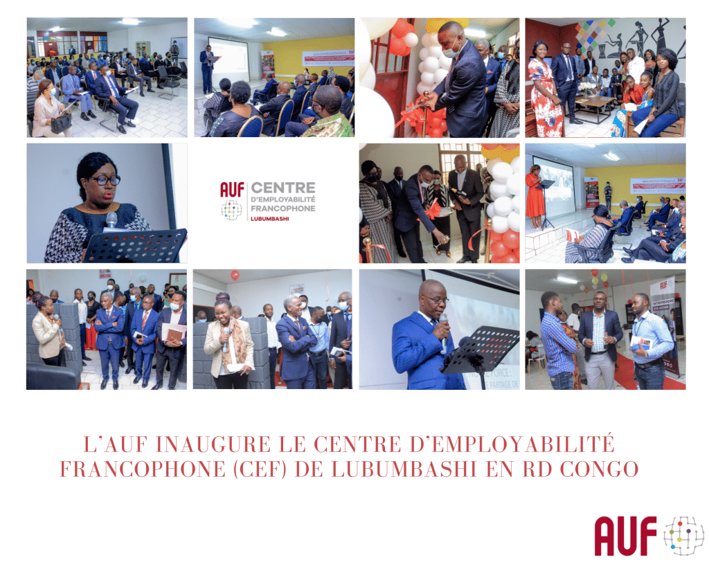 L’Agence Universitaire de la Francophonie (AUF) poursuit l’ouverture de ses Centres d’Employabilité Francophones (CEF) avec l’inauguration d’un nouveau Centre en République Démocratique du Congo (RDC).