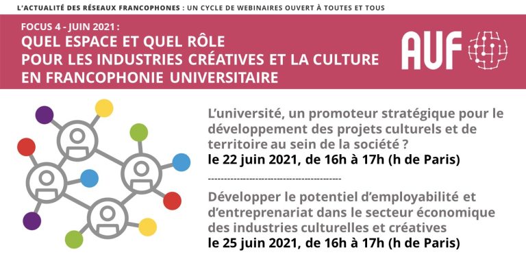 Cycle de webinaires « L’actualité des réseaux francophones » : Focus 4 : Quel espace et quel rôle pour les industries créatives et la culture en Francophonie universitaire ?