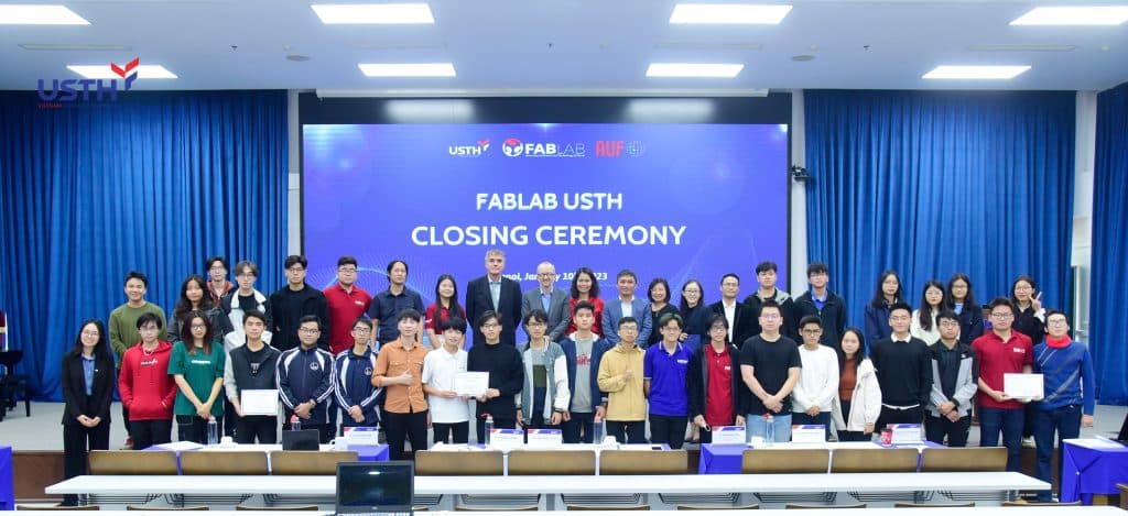 Construit avec l’accompagnement de l’AUF, cet espace d’innovation “4 en 1” est ouvert aux étudiants passionnés par les sciences et la technologie. Quatre espaces sont proposés aux publics : espace de formation, espace de “co-working”, espace de conception et espace de pré-production. Au sein de ce Fablab, les étudiants peuvent simuler des projets de production, concevoir de nouvelles idées innovantes et expérimenter des outils modernes. Dans le cadre des activités proposées par le FABLAB USTH, le concours « FabLab USTH Makeathon : Smart Public Space » a été lancé en octobre 2022. Il s’adresse aux étudiants vietnamiens qui ont en partage la passion de la recherche de l’innovation et soif de connaissances techniques.