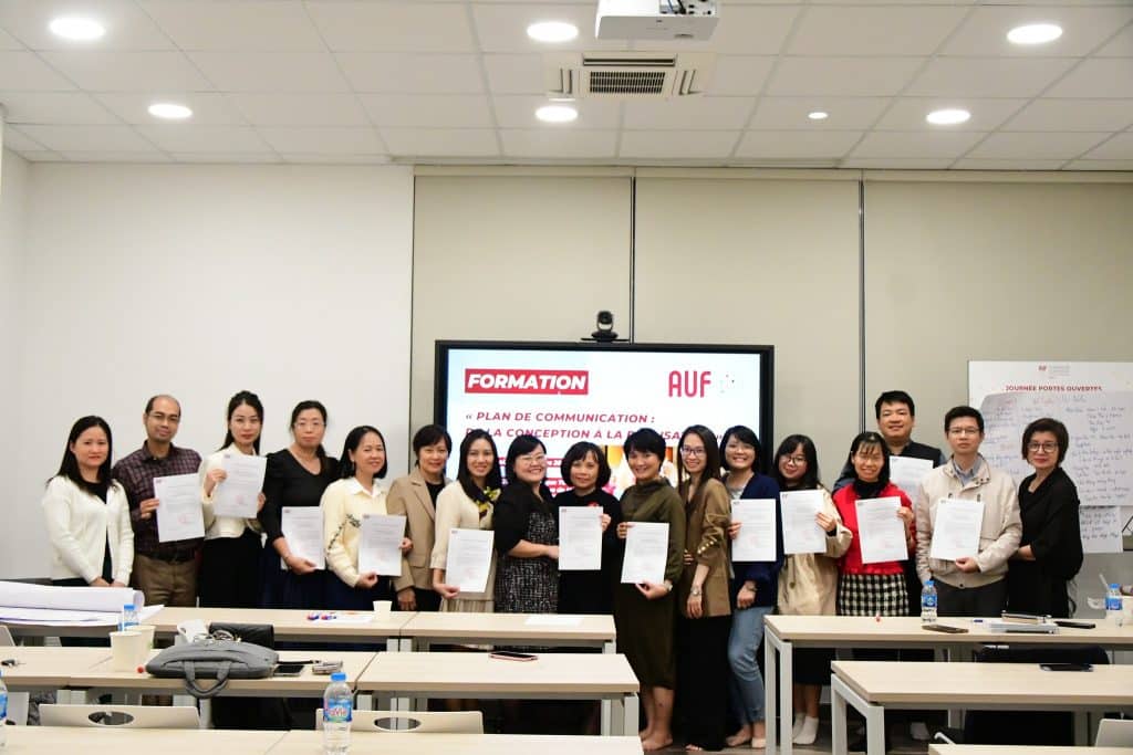 Dans le cadre de son projet régional visant à renforcer l’attractivité et la visibilité des programmes de formation du et en français, l’AUF-Asie-Pacifique a organisé avec succès la formation “Plan de communication : de la conception à la réalisation”, dont la 4ème session s’est tenue le 5 décembre au CNF de Hanoï. Elle a fourni aux participants les outils nécessaires pour concevoir et mettre en œuvre des plans de communication opérationnels et ciblés.