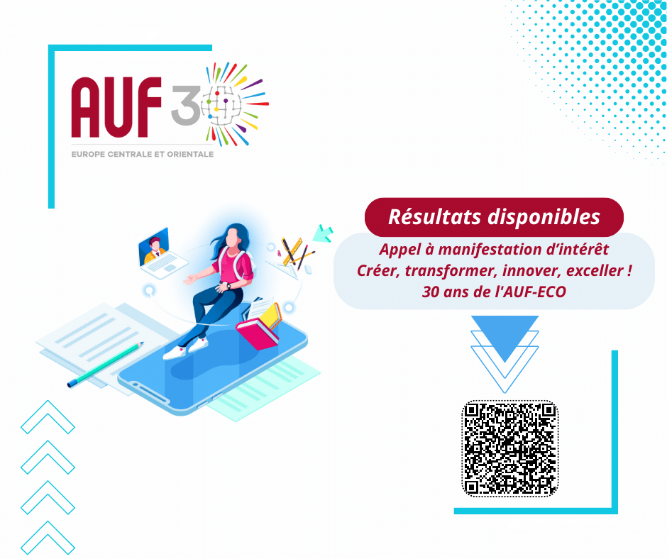 Nous avons le plaisir de vous annoncer les résultats de l’appel à manifestation d’intérêt Créer, transformer, innover, exceller ! 30 ans de l’AUF-ECO, à l’attention des établissements membres, dans le cadre du projet 30ème anniversaire de l’AUF en Europe Centrale et Orientale.