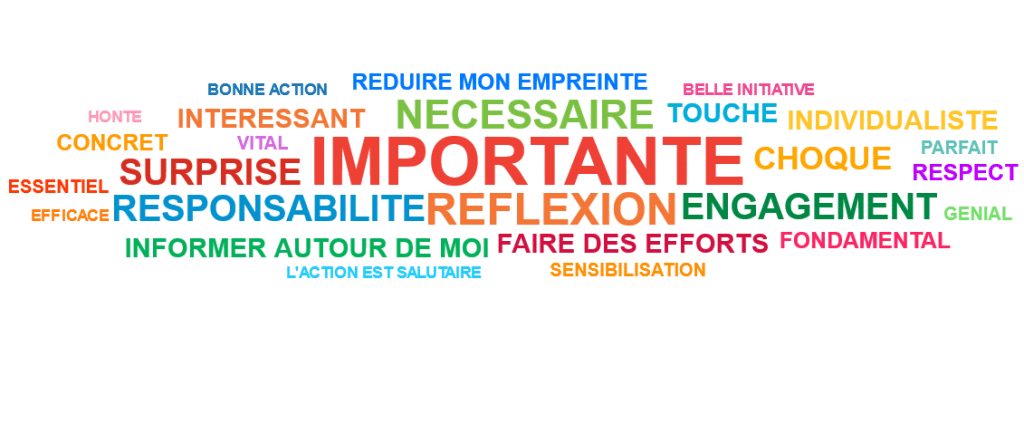 Chaque participant.e a partagé un mot qui symbolise pour lui ou elle cette action. Leur contribution a permis de constituer un nuage de mots.